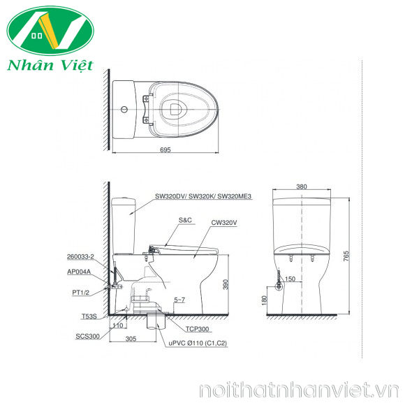 | Kích thước | Dài 695 x rộng 380 x cao 765 x cao thân 390 mm |