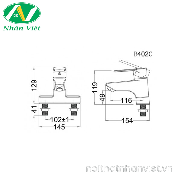 | Kích thước | Cao vòi 129x Cao từ đầu vòi 49x Dài 116mm |